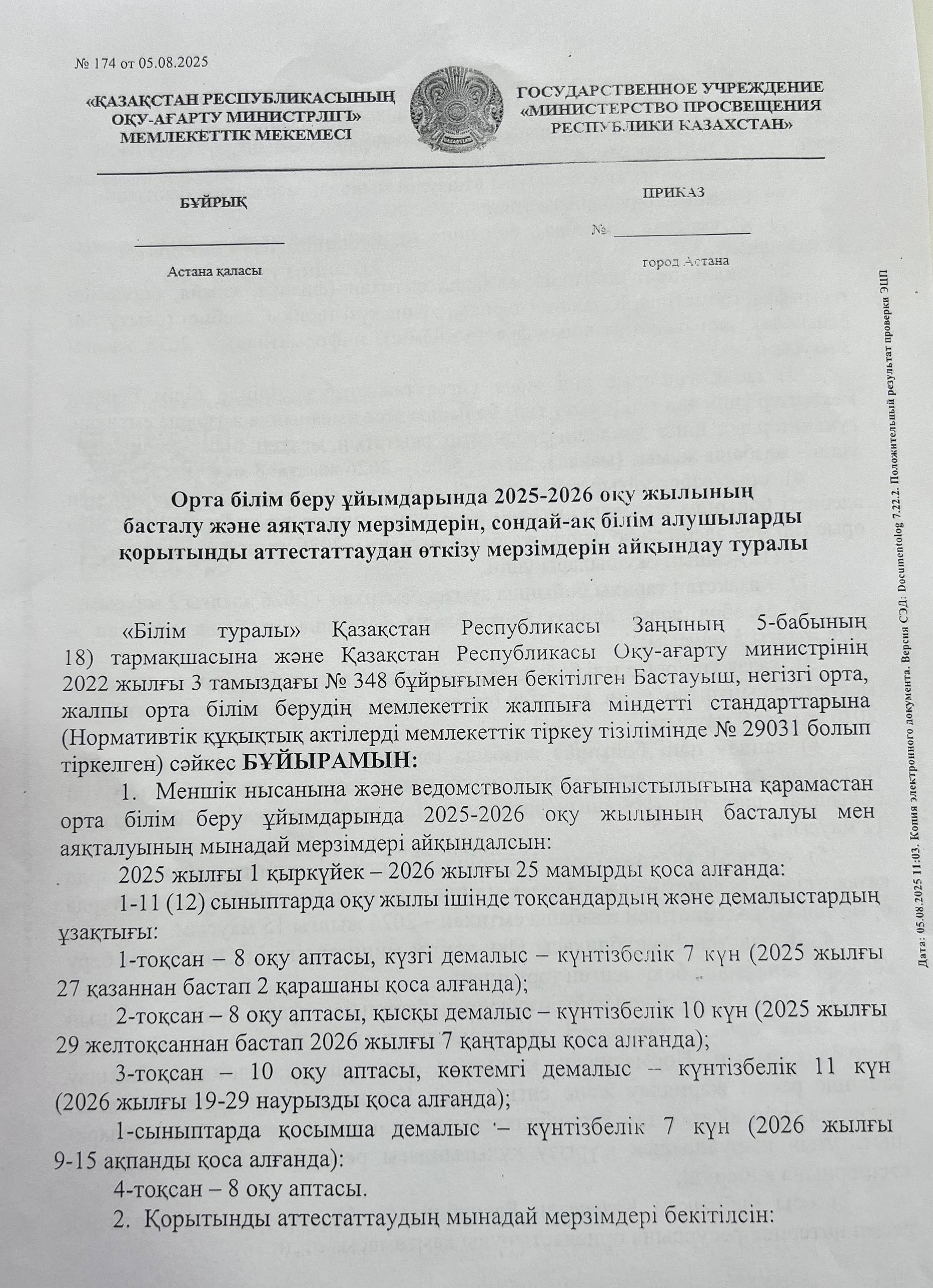 отдела образования Баянаульского района Управления образования Павлодарской области